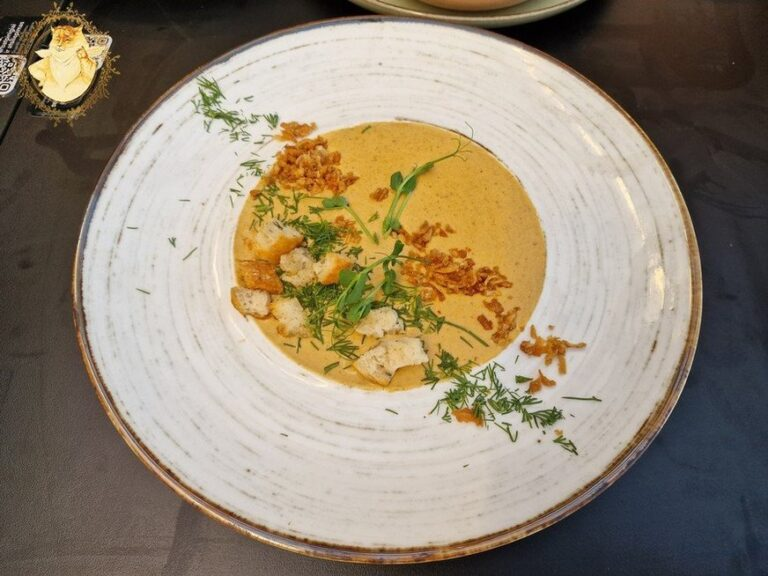 Baravykų sriuba – 6,50 €. Paskanavęs baravykų sriubos šaukštą galiu drąsiai teigti, kad ją gamino iš baravykų, o ne iš jų skonio turinčių miltelių.