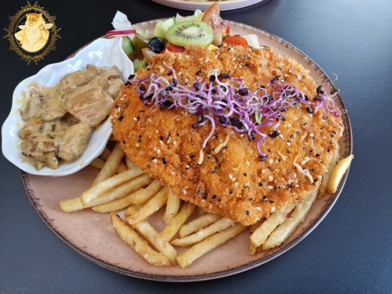 XL vištienos šnicelis be sūrio – 13,00 €. Dar vienas „monstras“, tą dieną nugulęs ant ilgo mūsų šeimos stalo buvo vištienos šnicelis.