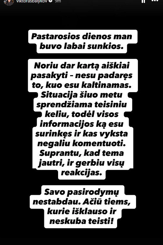 Pastarosiomis dienomis diskusijų epicentre atsidūrė Viktoras Balykov, kaltinamas galimu smurtu prieš buvusią merginą. Po kaltinimų dalis jo darbo partnerių nutraukė su juo ryšius. Skandalą viešai aptarus ir jo kolegoms, antradienį pats komikas nusprendė darkart kreiptis į savo sekėjus.