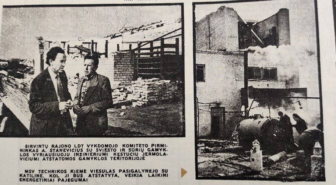 „Tik laidų galai kyšo. Ir viskas. Tad ar gali stebėtis čia pat esančios „Širvintos“ kolūkio gyvenvietės kolūkiečiu, tebeieškančiu stalo, kurį viesulas išnešė pro langą ir kažkur nudangino…“, – pastebi žurnalistas.