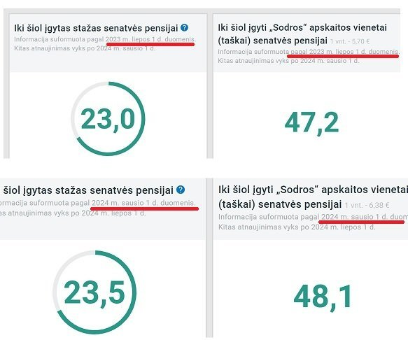 Pavyzdžiui, iki šio sausio 23,5 metų dirbęs žmogus dabar yra sukaupęs 48,1 apskaitos vieneto.