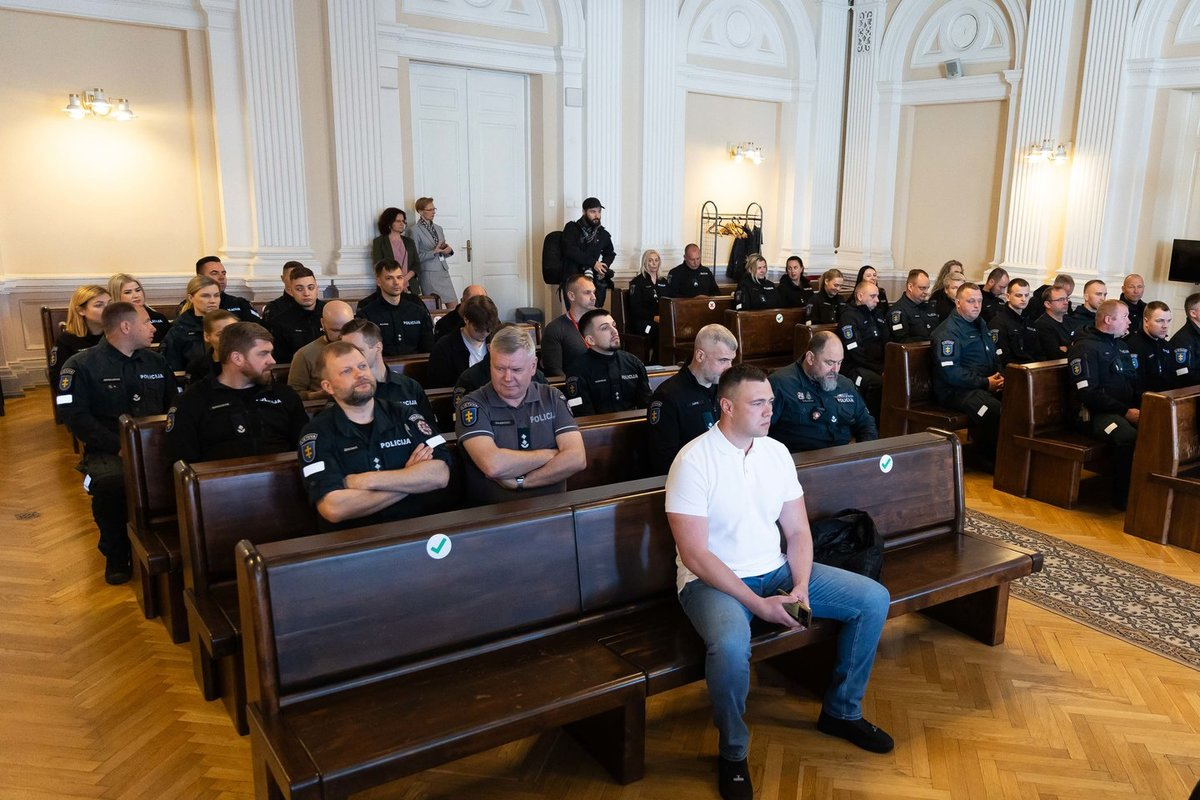 Kaip ir anksčiau vykusiuose teismuose, palaikyti teisiamo kolegos atvyko policijos vadovybė, pareigūnai. Teismo salėje sėdėjo policijos generalinio komisaro pavaduotojas Renaldas Žekonis, taip pat apie 30 tarnybinėmis uniformomis vilkėjusių policijos pareigūnų.