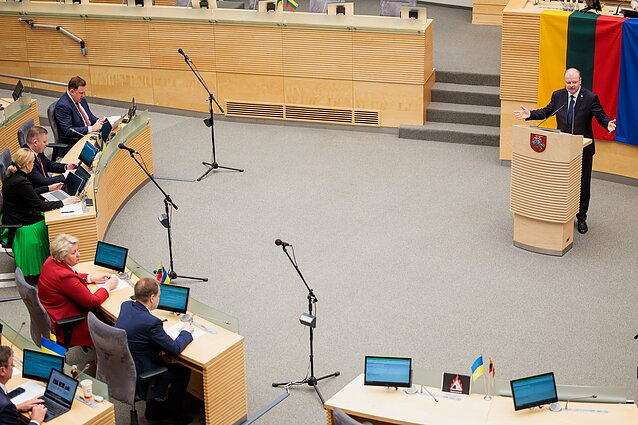S. Skvernelio kalba Seimo salėje buvo palydėta plojimais.