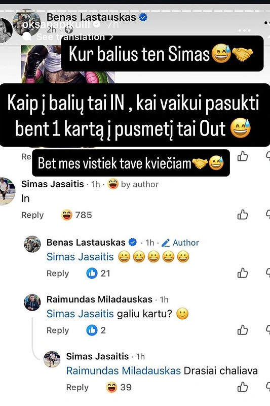 Po to, kai Dominykas Dirkstys pranešė apie vestuves su Oksana Pikul ir pakvietė į jas visus norinčius, pasisakė ir buvęs moters sutuoktinis krepšininkas Simas Jasaitis – parašė dalyvausiąs. Galiausiai tokie jo žodžiai neprasprūdo pro akis pačiai Oksanai – ji nepraleido progos įgelti Simui ir atskleidė, ar šis laukiamas šventėje.