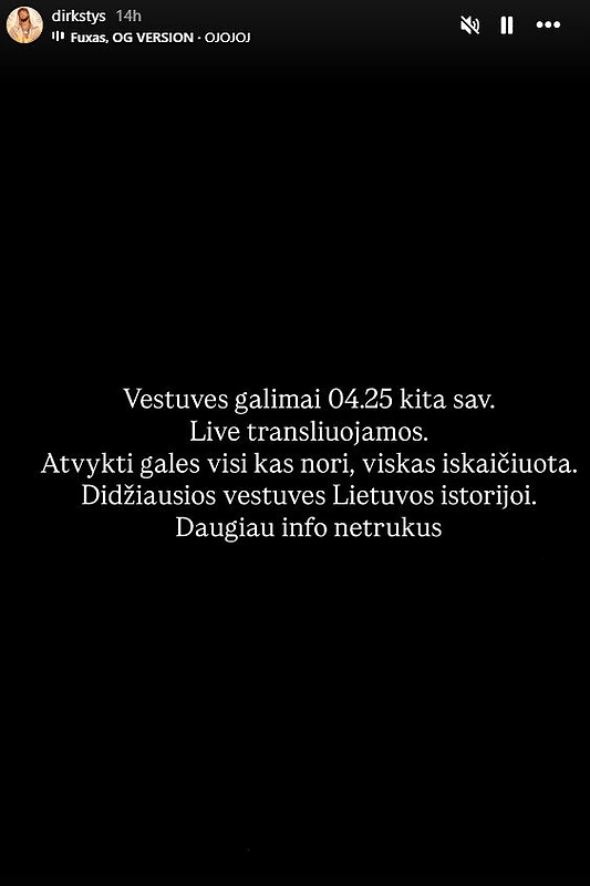 Didžiausios vestuvės Lietuvos istorijoj. Daugiau informacijos netrukus“, – rašė D.Dirkstys.