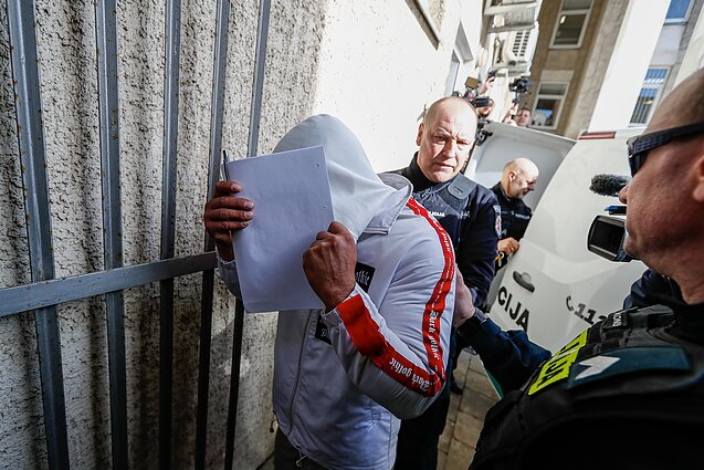 Teismo salėje pirmasis įtariamasis nepratarė nė žodžio, slėpė veidą. Į klausimą, ar pripažįsta kaltę, vyras neatsakė.