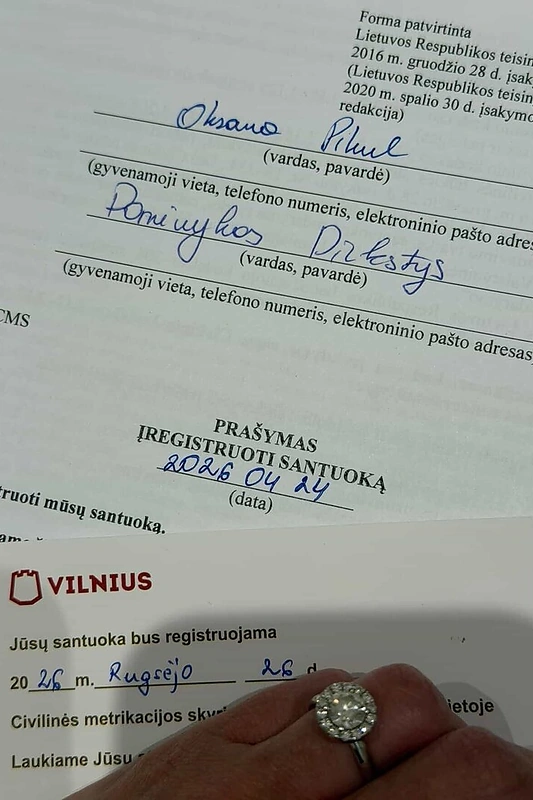 Paviešinto dokumento nuotraukoje matyti, kad prašymas įregistruoti santuoką buvo pateiktas balandžio 24 dieną, o rugsėjo data paskirta rugsėjo 26-ąją.