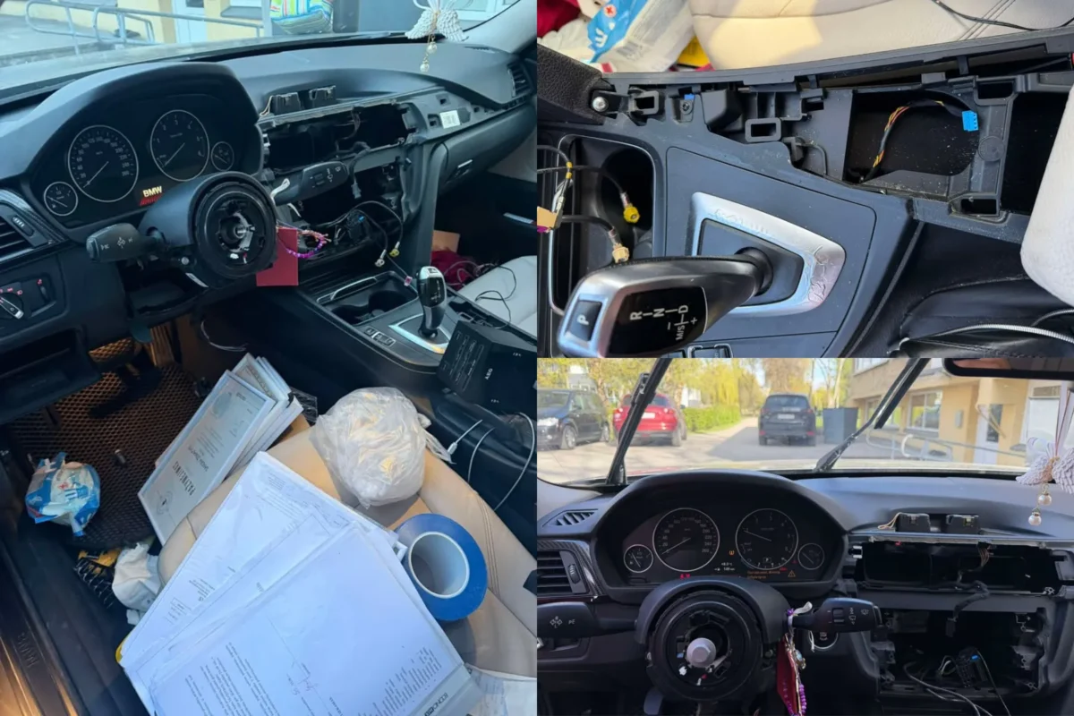 Moteris atsiuntė nuotraukas, kuriose matyti, kas liko iš automobilio vidaus po jį apšvarinusių vagių vizito. Akivaizdu, kad ilgapirščiai pasisavino net automobilio vairą.