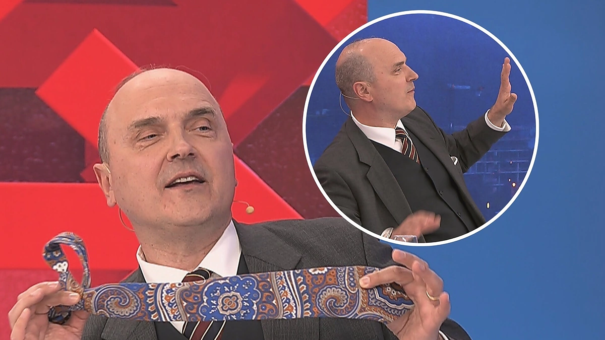 O komikas ir aktorius Slavka netikėtai iš kišenės išsitraukė margą kaklaraištį.