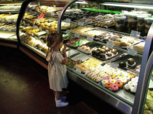 Maža mergaitė nusiperka skanią spurgą. Kažkas sako: „Ar žinai, kiek cukraus yra šiuose dalykuose?“ Ponia:....